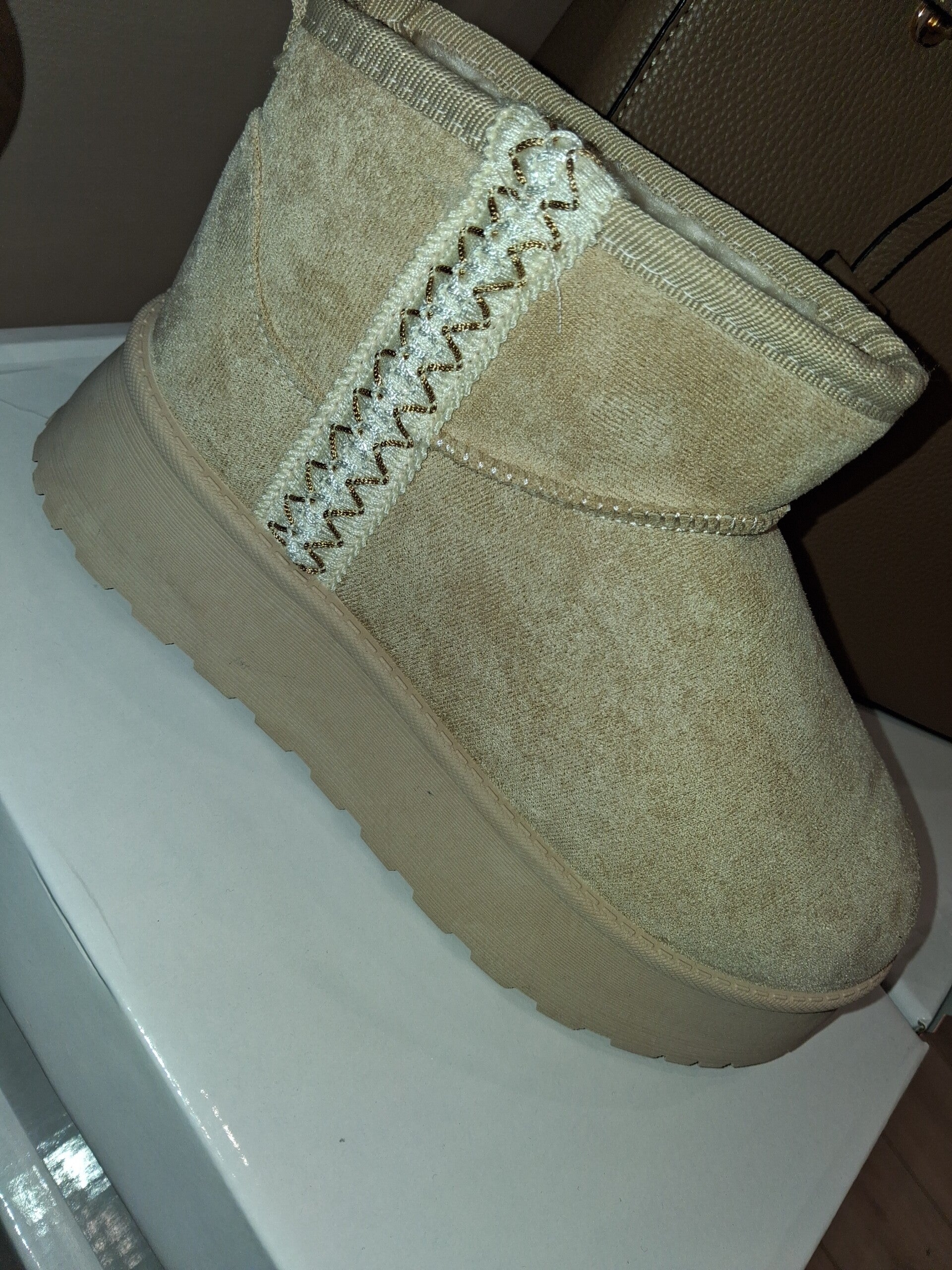 Bottines beiges fourré compenser
